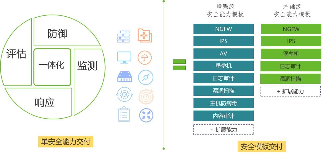 采用通用硬件平臺,綜合多種安全能力,以安全服務交付的形式,快速形成安全能力模板,一站式完成安全能力建模。